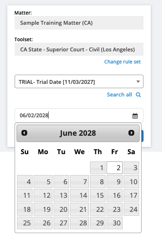 Move your trial date by recalculating in the deadline chart or under +Caclulate