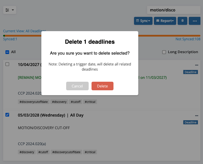 4. Remove deadlines that no longer apply by filtering for "not synced"