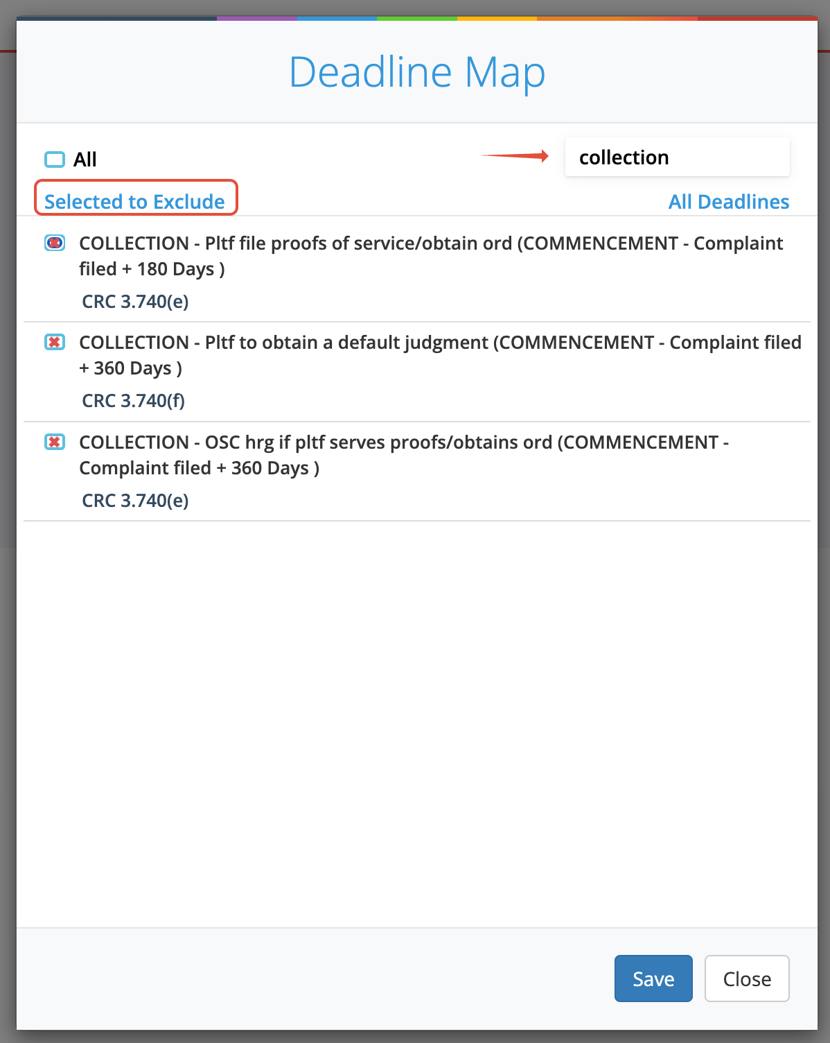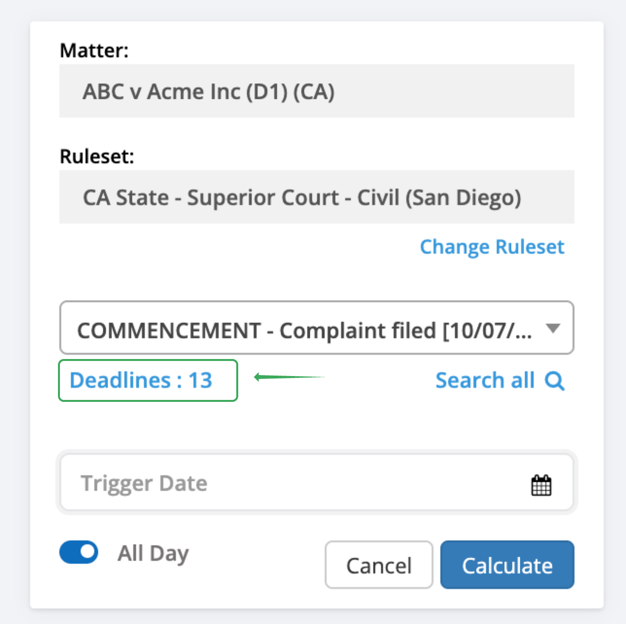 - If you want a new deadline these requests have to be approved by LawToolBox, as they will be available for all users for those rules