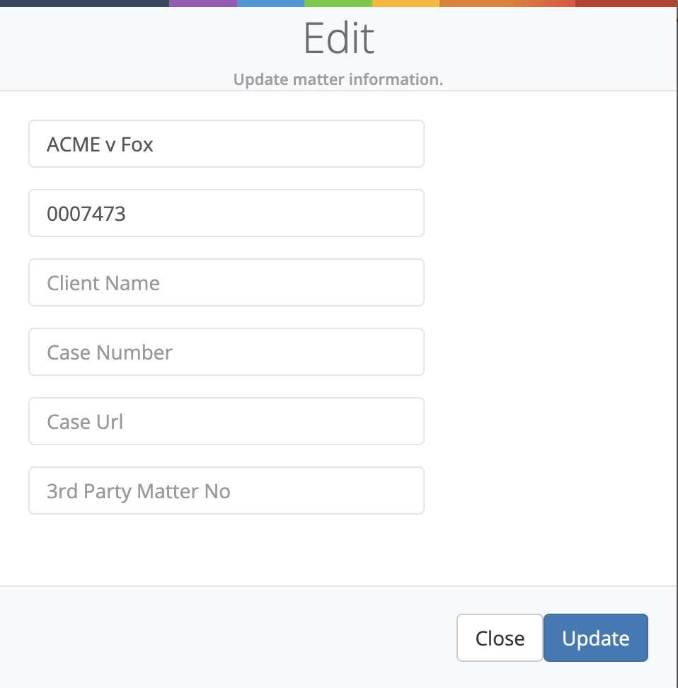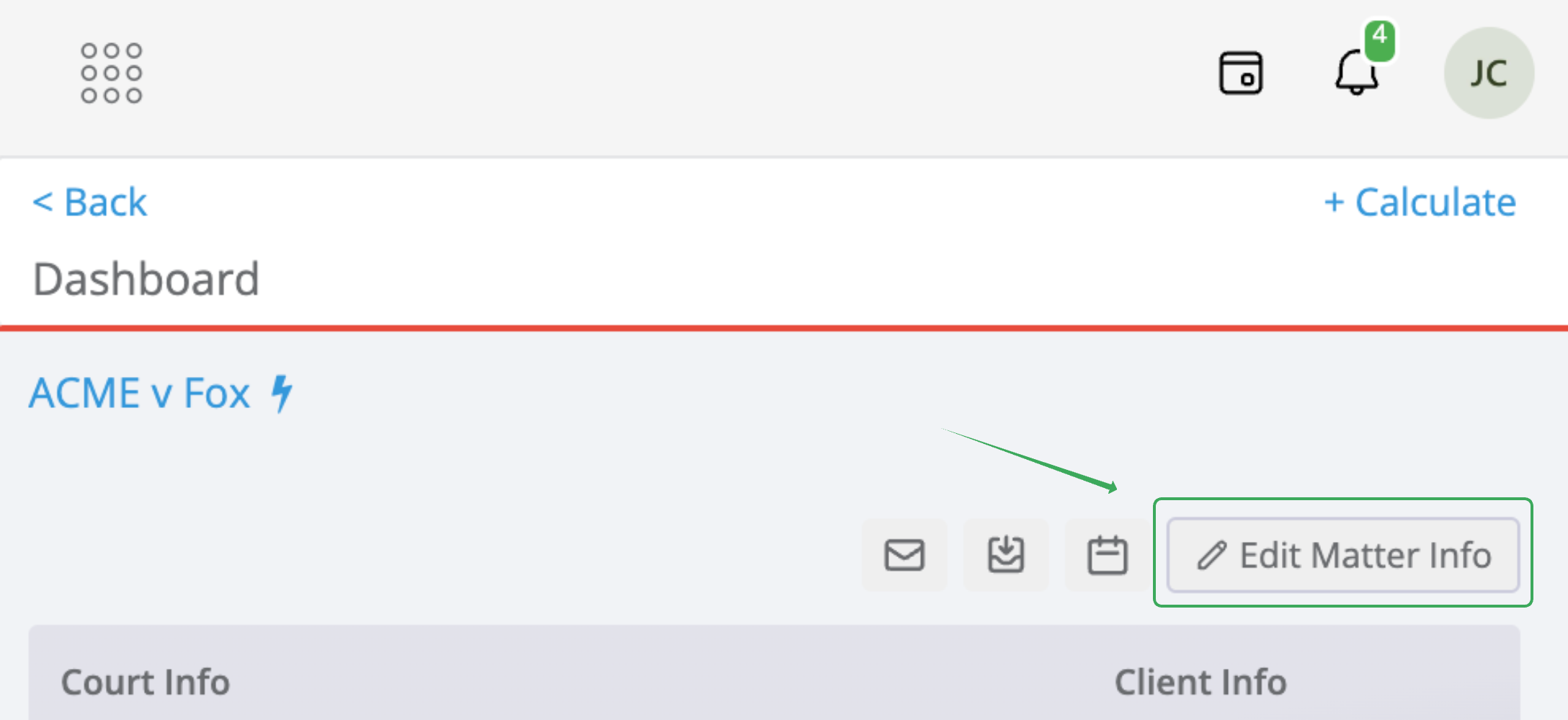 - Step 1: Open the matter menu > Select "Matter Dashboard" > Click "Edit Matter info" > Save