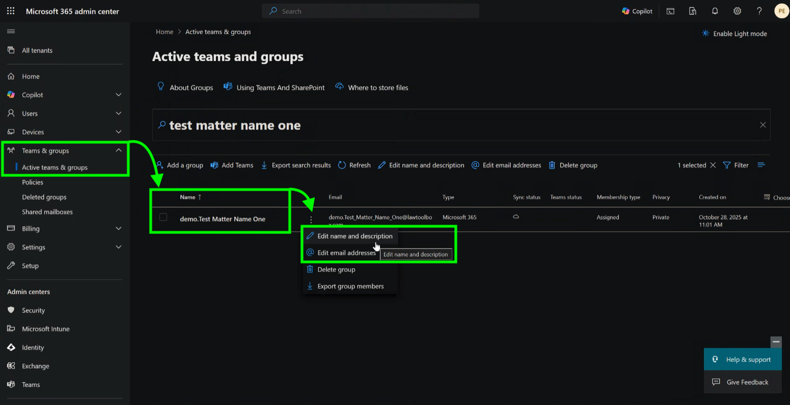 If you are using Microsoft Teams, SharePoint site, or other M365 connections, you may consider manually renaming the group as a M365 Admin under Teams & Groups. LawToolBox does