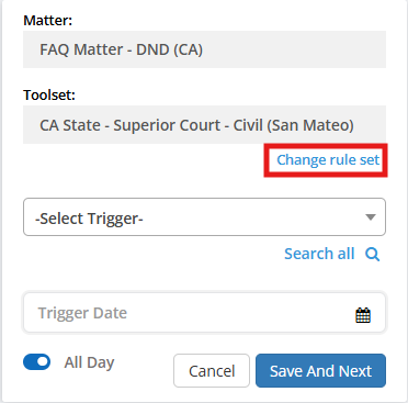 When you change rule sets this will un-sync all of your deadlines and make all deadlines individual appointments that are no longer linked to each other. You can go back into view and edit deadlines to then sync the deadlines back to your calendar.