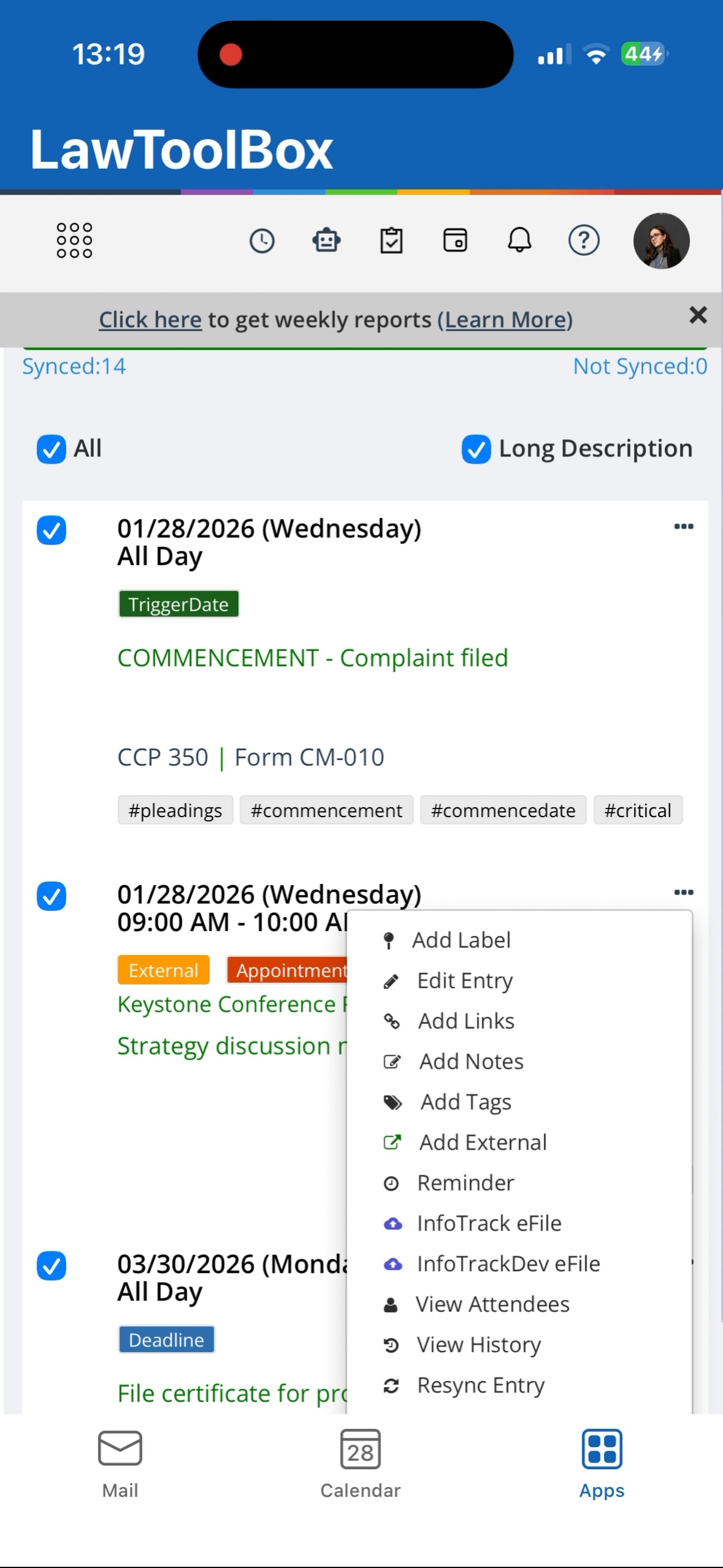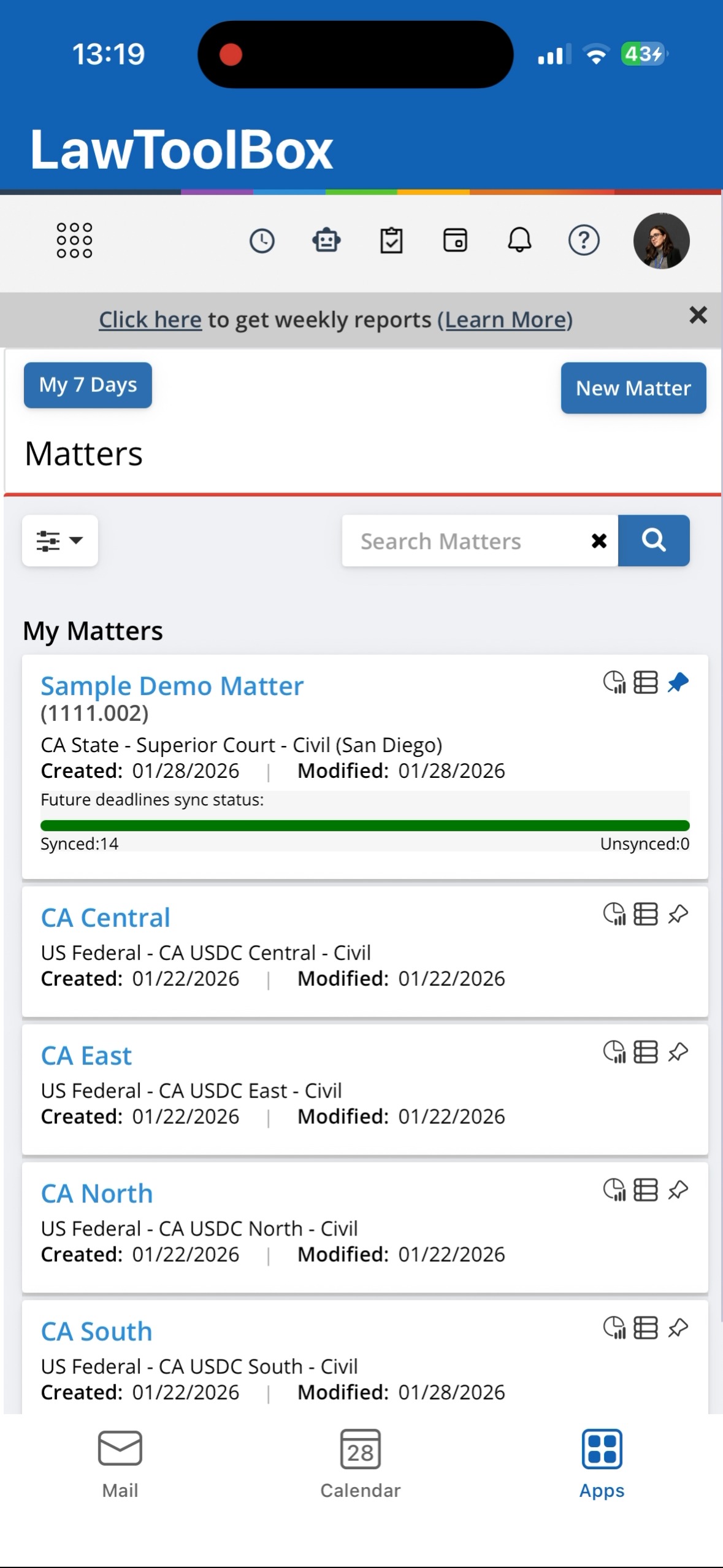 Navigate to any matter to edit existing deadlines or add new events